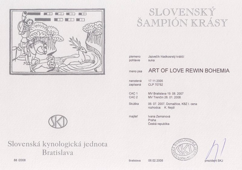 Dnes nám (respektive Aidě) konečně přišel certifikát potvrzujicí přiznání titulu slovenský šampion krásy.