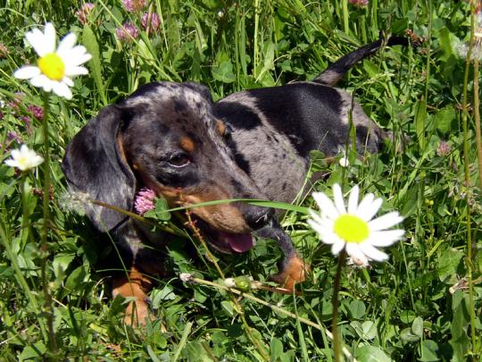 2007/05 - chalupa - KrkonošeDalší členy rodinné smečky jsme jeli navštívit na chalupu do Krkonoš. Ke koním si tam Quenny "čuchla" poprvé a moc velkou důvěru v ní nevzbuzovali.
