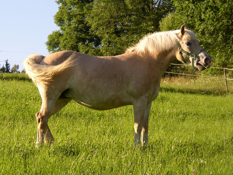 Hafla, pořízená v červenci roku 2006 jako vyjížďkový rodinný koník, toho pravda pod sedlem moc nenachodila, ale zato funguje jako výborná sekačka na chalupě a 11.1.2008 nám porodila sice trochu nečekané, ale zato nádherné hříbátko - hřebečka Alfa.