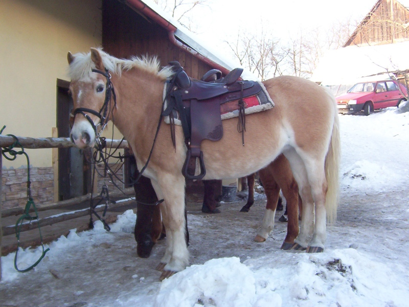Hafla, pořízená v červenci roku 2006 jako vyjížďkový rodinný koník, toho pravda pod sedlem moc nenachodila, ale zato funguje jako výborná sekačka na chalupě a 11.1.2008 nám porodila sice trochu nečekané, ale zato nádherné hříbátko - hřebečka Alfa.