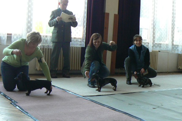 Na speciální výstavě jezevčíků v Holýšově se dařilo zejména Quenny, která získala ocenění V1, CAJC. Aida se panu rozhodčímu moc nezdála kvůli špatnému osrstění (opět jsme narazili na starý problém: zima+pes v posteli=žádná srst), takže získala ocenění "pouze" výborná. Aby měli z výletu nějakou radost i pejsci, zastavili jsme se cestou v lese poblíž Koněpruských jeskyní, kde se holky vylítaly a já udělala pár fotek.