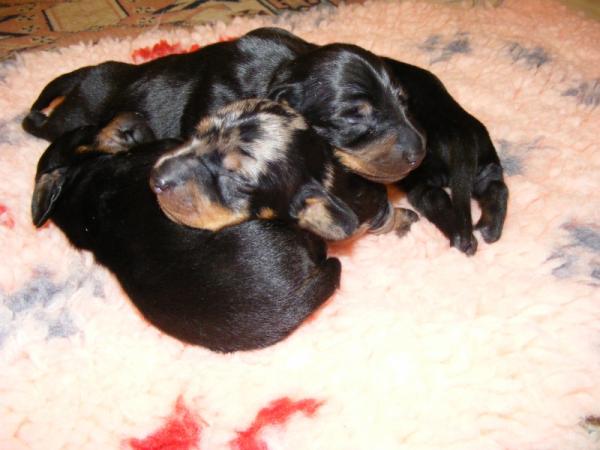V pátek 31.7.2009 se Quenny přirozenou cestou narodila 4 štěňátka - 2 čeropálení pejsci, 1 černopálená a 1 tygrovaná fenka. Vše proběhlo bez komplikací a mimina se mají čile k světu.