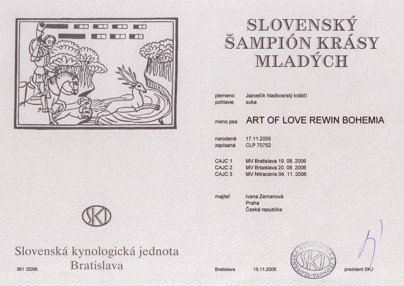 | 4.11.2006 | mezinárodní | Nitra | mladých | výborná 1, CAJC | Štefan Štefík |